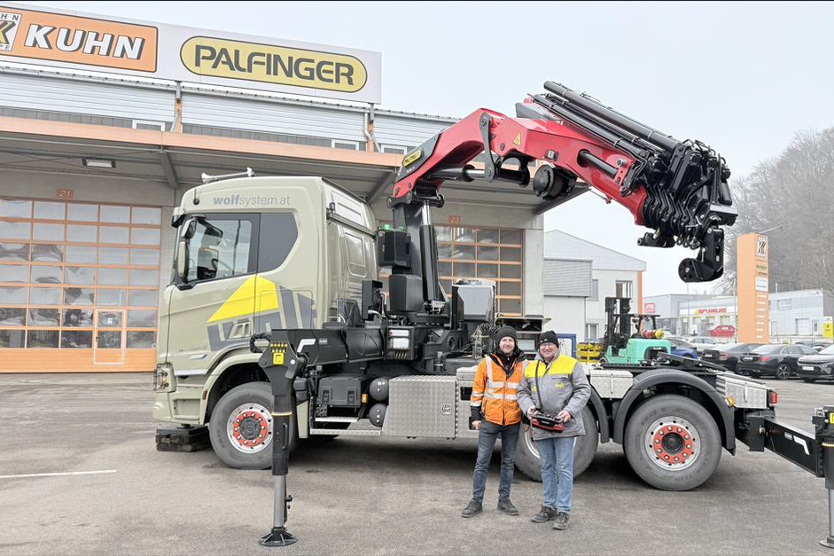 KUHN-Ladetechnik übergibt PALFINGER PK- 480 TEC an Wolf Systembau